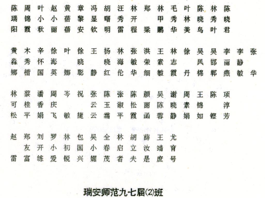 上一个:1997年瑞安师范学校九七届(1)班毕业合影留念