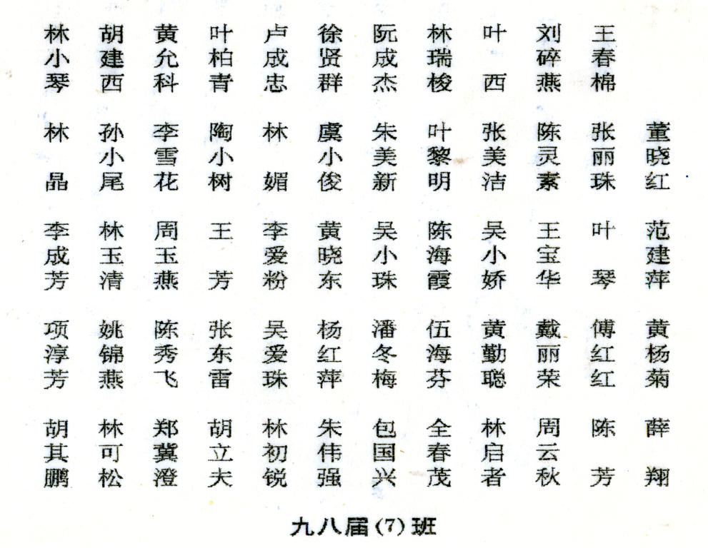 上一个:1998年瑞安师范学校九八届(6)班毕业合影留念