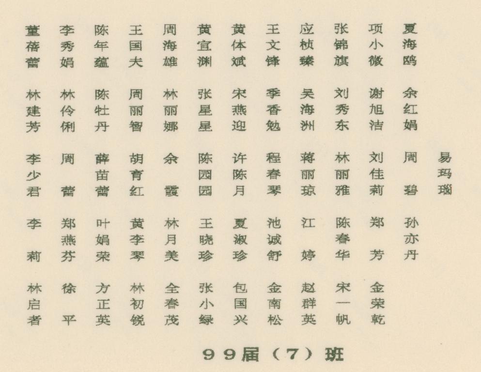 上一个:1999年瑞安师范学校九九届(6)班毕业合影留念
