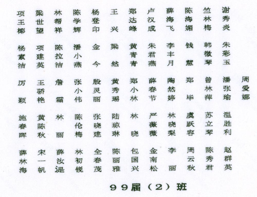 上一个:1999年瑞安师范学校九九届(1)班毕业合影留念