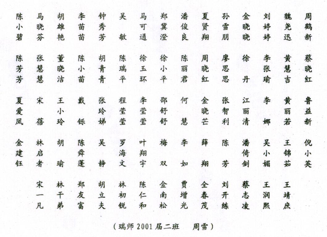 上一个:二00一年六月瑞安师范学校2001届(1)班毕业合影留念